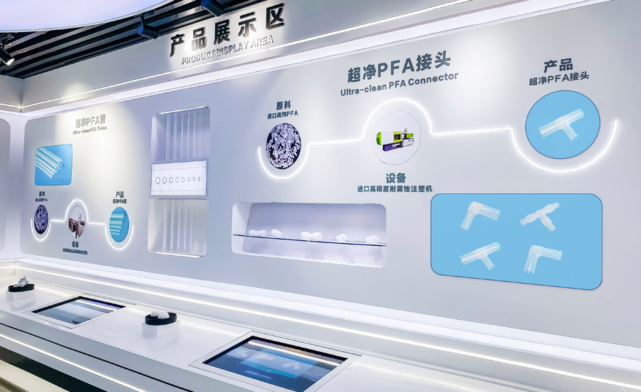 在打造半导体级产品过程中,保视丽突破了超净PFA材料的塑化、挤出、真空定径、牵引卷曲以及尺寸控制等关键工艺技术,并结合超纯的材料配方以及先进的耐高温耐腐蚀精密设备,对体系中管材的尺寸公差、表面平滑度、防腐蚀性能与金属离子析出等关键性能指标进行精准把控,成功打造半导体级超净PFA管。产品具备三大核心优势: